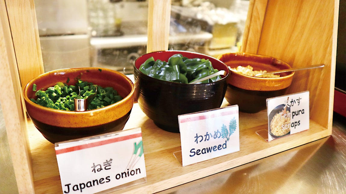 セルフサービスの夜鳴きうどんは、トッピングもお好みで。