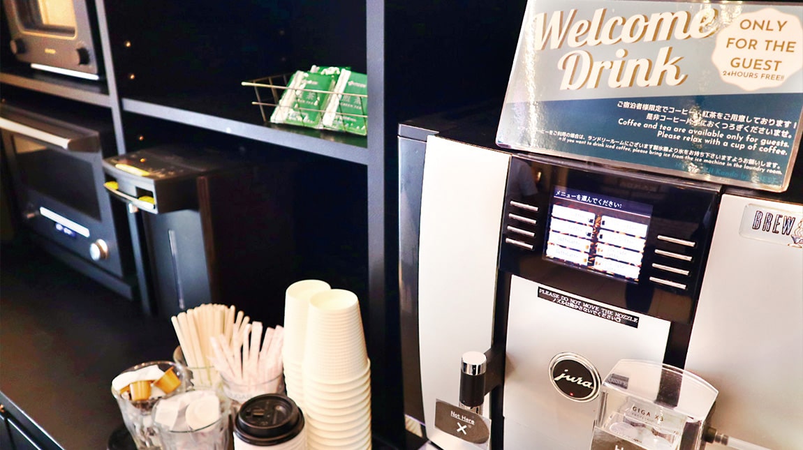 24時間ご利用いただけるウェルカムドリンク。香り豊かな珈琲や紅茶をご用意しております。