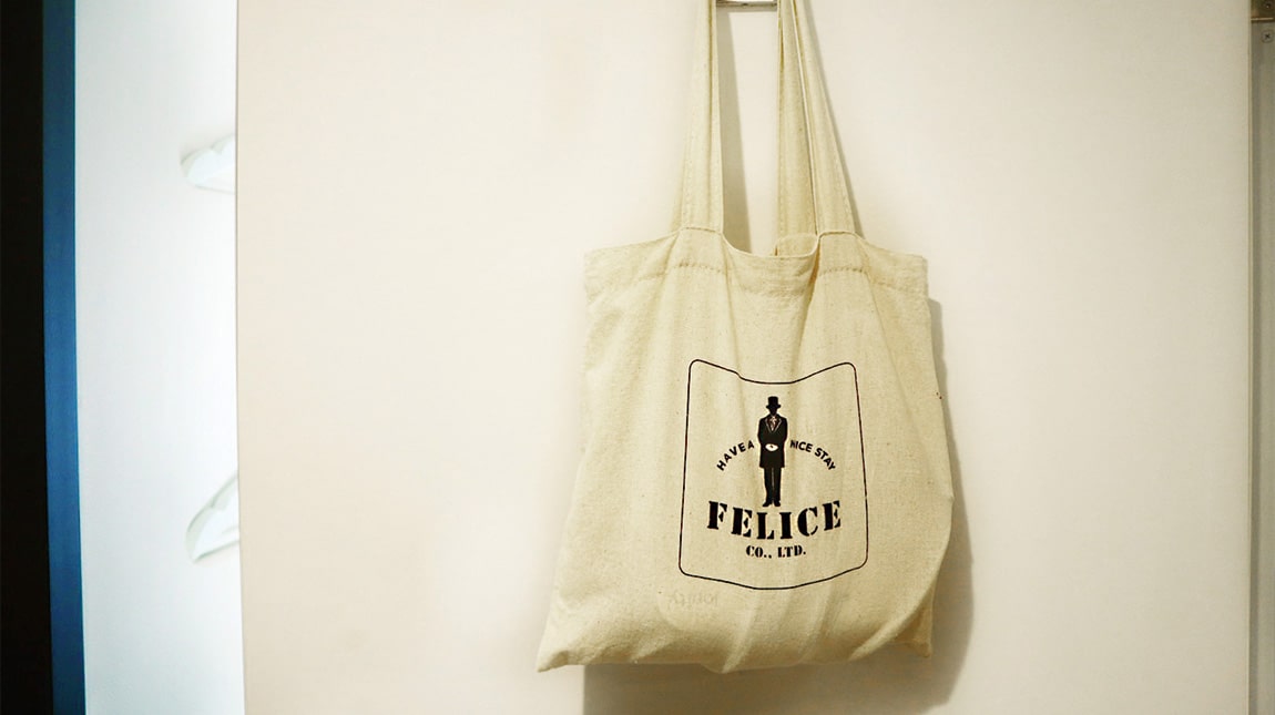 お部屋にご用意しておりますアメニティはおしゃれなバッグでご用意しております。