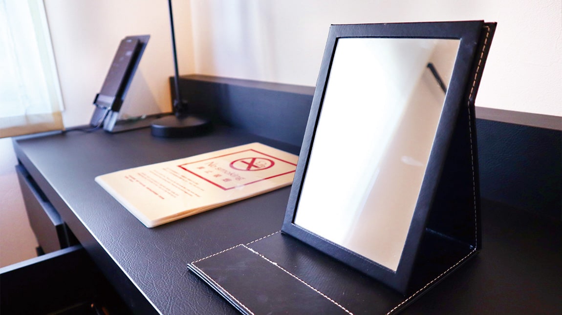 すぐお手元で見られる鏡を全客室にご用意しております。