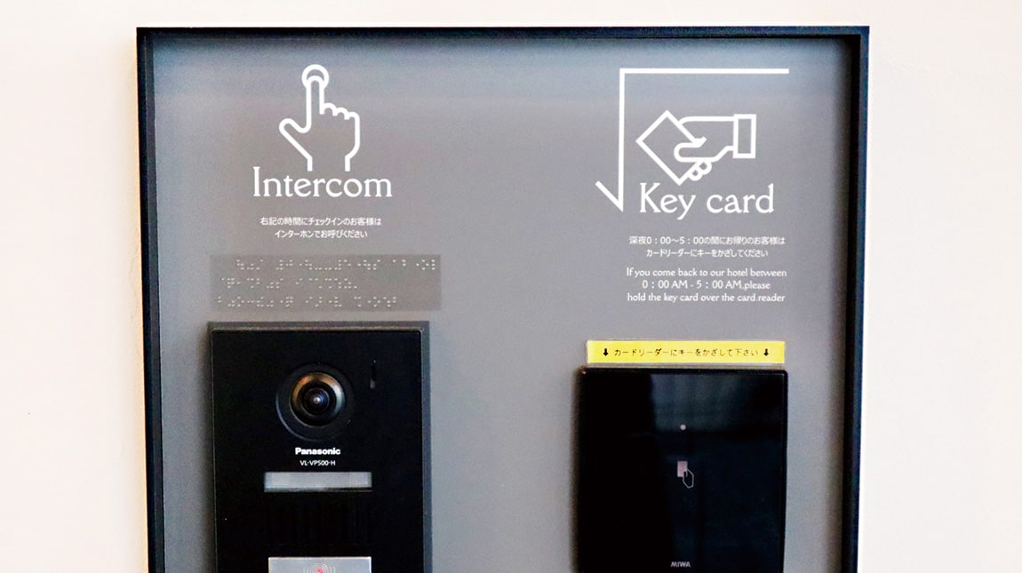宿泊者様のみ24時間入館可能なセキュリティシステム。エレベーターセキュリティも完備しており、女性お一人のご宿泊もご安心いただけます。
